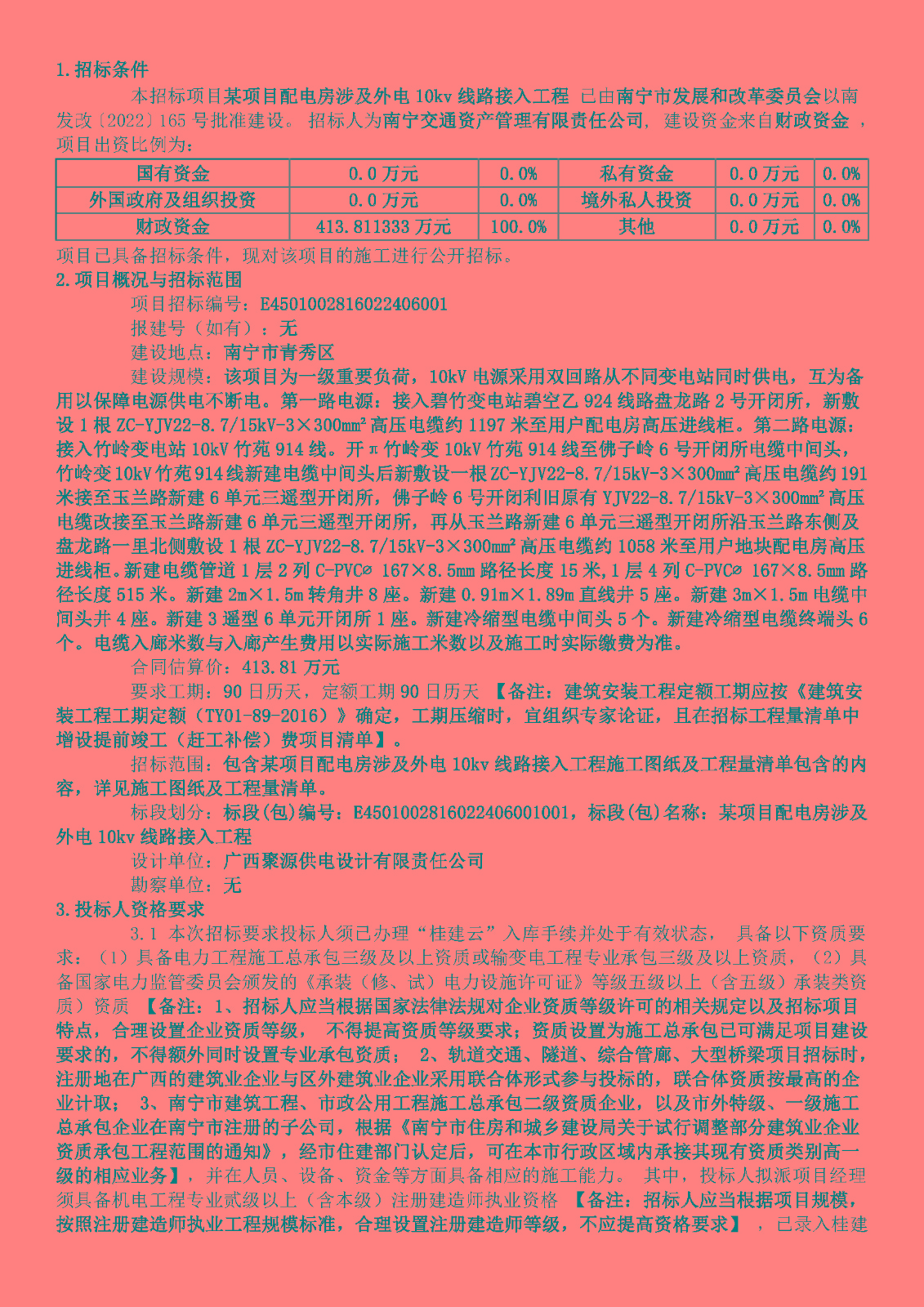 某項目配電房涉及外電10kv線路接入工程施工招標(biāo)公告