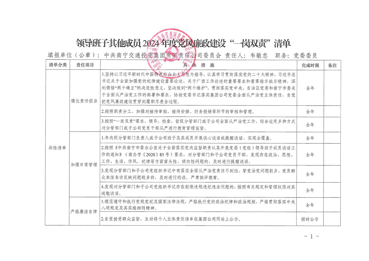 領(lǐng)導(dǎo)班子其他成員2024年度黨風(fēng)廉政建設(shè)“一崗雙責(zé)”清單(七)