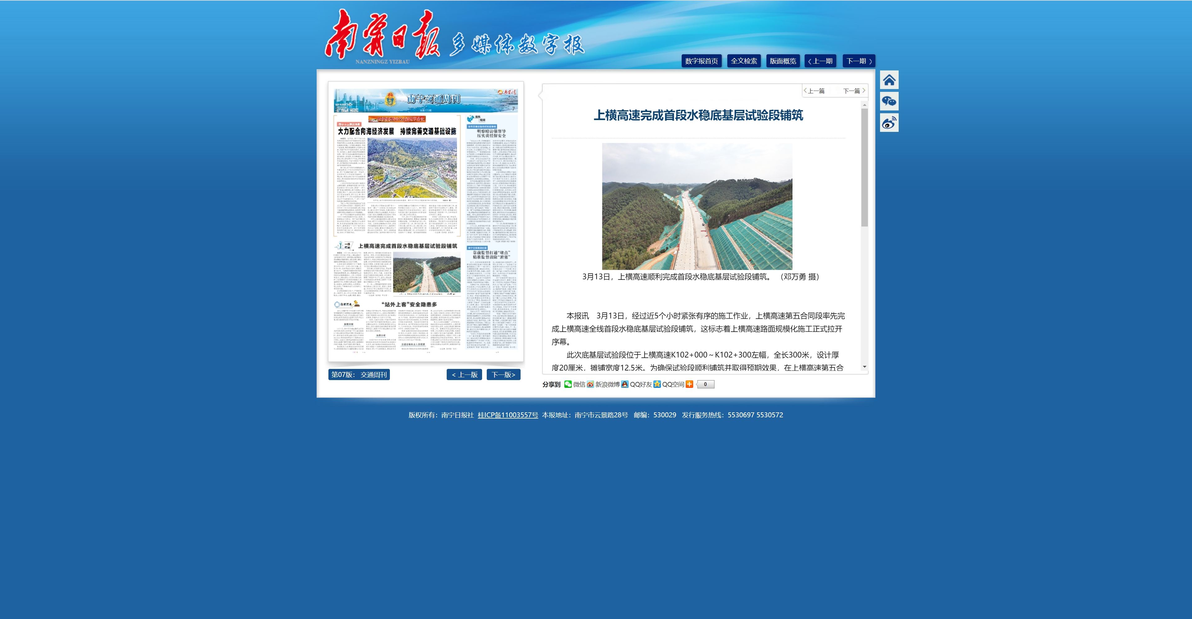 上橫高速完成首段水穩(wěn)底基層試驗(yàn)段鋪筑