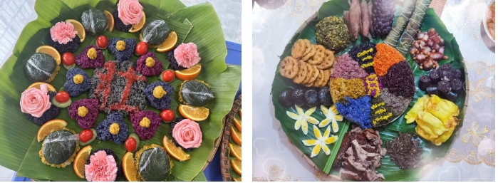 大家用簸箕拼盤將層次分明、色彩斑斕的各項珍饈有規(guī)律的擺放到簸箕中,從五谷雜糧的馥郁到山珍海味的鮮美,再到田園時蔬的清香,這些菜肴不僅口感獨特,而且蘊含著豐富的民族文化內(nèi)涵,體現(xiàn)了人們對美好生活的向往和追求。圖為集團公司職工前往社區(qū)參加活動拍攝的特色美食照片。