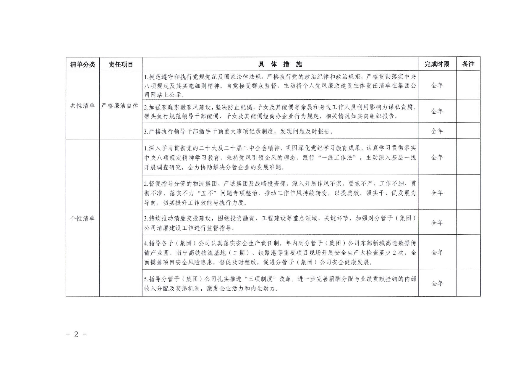 南寧交投集團(tuán)領(lǐng)導(dǎo)班子其他成員2025年度黨風(fēng)廉政建設(shè)“一崗雙責(zé)”清單(五)