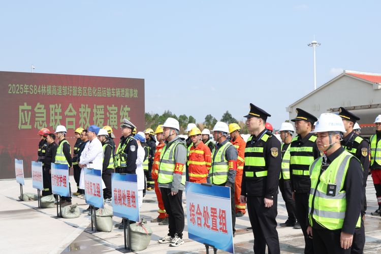 為全面提升林橫高速對(duì)服務(wù)區(qū)?;愤\(yùn)輸泄漏突發(fā)事故的應(yīng)急處置能力,加強(qiáng)“一路多方”各部門間的協(xié)同配合,保障過往司乘生命財(cái)產(chǎn)安全,3月18日,南寧交投集團(tuán)下屬南寧高速公司聯(lián)合賓陽縣應(yīng)急局、生態(tài)局、交警、消防救援大隊(duì)、衛(wèi)生局及區(qū)執(zhí)法局二支隊(duì)四大隊(duì)、六大隊(duì)等單位,在林橫高速鄒圩服務(wù)區(qū)開展?;愤\(yùn)輸泄漏突發(fā)事故應(yīng)急聯(lián)合救援演練。