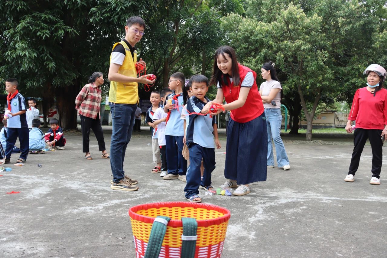 課堂結(jié)束后,在志愿者們的帶領(lǐng)下,孩子們來(lái)到教室外參與拋繡球、投壺、套圈等民族傳統(tǒng)體育項(xiàng)目。志愿者與孩子們分組協(xié)作、相互配合,完成了一項(xiàng)項(xiàng)挑戰(zhàn),激勵(lì)孩子們享受運(yùn)動(dòng)的快樂(lè),觀察到、感受到生活中的民族藝術(shù)的魅力,豐富了文化生活和情感體驗(yàn)。