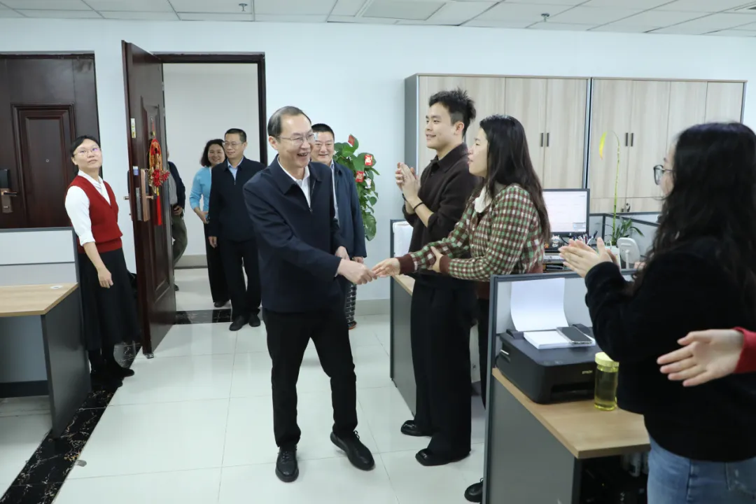 “新年好,給大家拜年了,祝大家身體健康,工作順利!”喜氣祥和的氛圍中,領(lǐng)導(dǎo)們與各子(集團(tuán))公司、各部門員工親切握手、熱情交談。曹壯對大家過去一年的辛勤付出表示衷心感謝,希望大家迅速從“放假狀態(tài)”切換到“工作模式”,繼續(xù)鼓足干勁、開拓創(chuàng)新,以馬上就辦、敢做善成的奮進(jìn)姿態(tài)迎接新的挑戰(zhàn),凝心聚力、真抓實(shí)干、攻堅(jiān)克難,確保各項(xiàng)工作有序推進(jìn)、高效落地,為全面完成各項(xiàng)目標(biāo)任務(wù)開好頭、起好步。