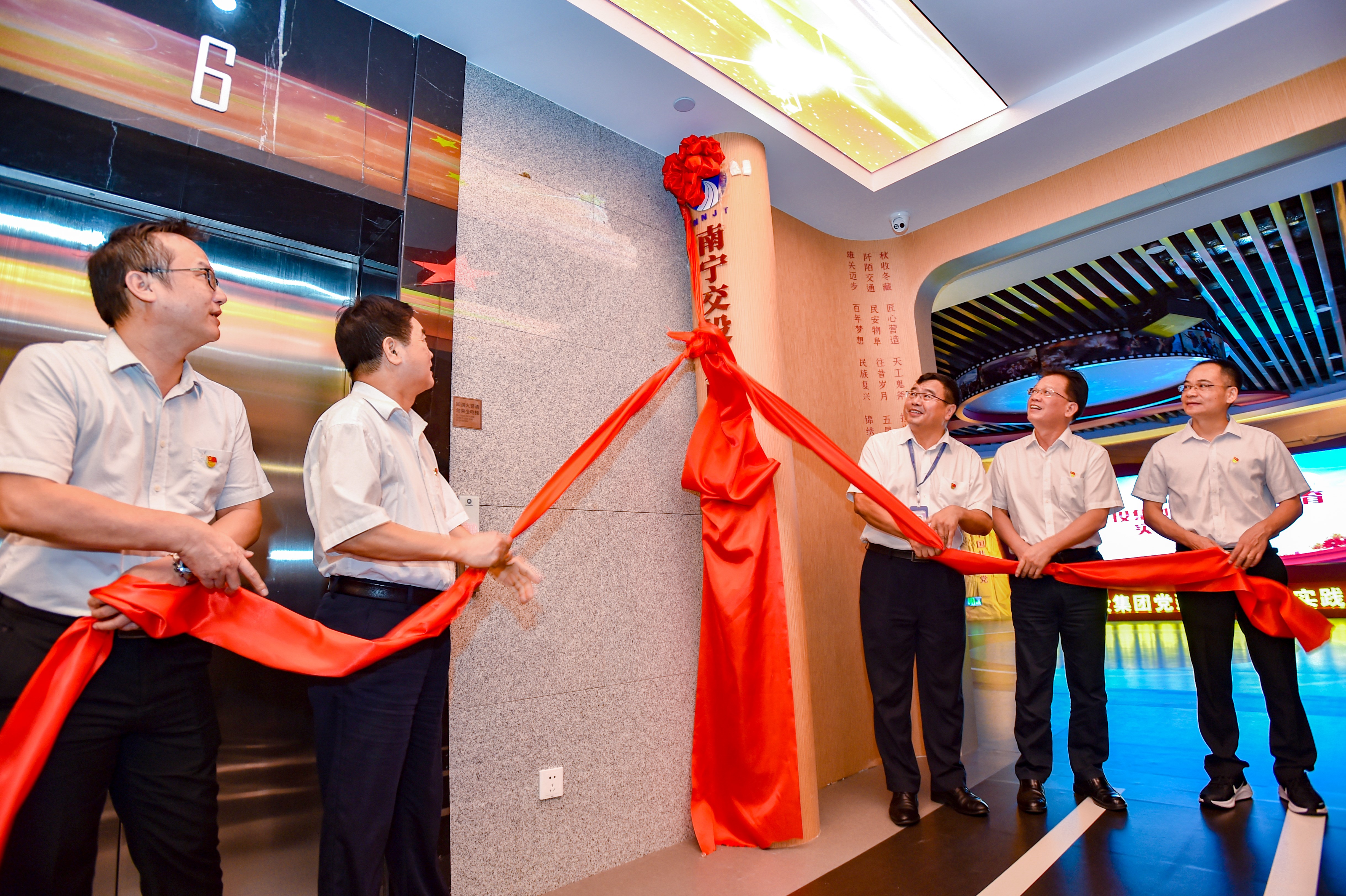 2021年7月1日下午,南寧交投集團新老黨員身著白襯衫,佩戴閃亮的黨員徽章,等候在集團公司辦公樓10樓黨建學習教育實踐基地門口,準備參加“初心如磐奔未來” 黨史學習教育暨黨建學習教育實踐基地(以下簡稱黨建基地)啟用儀式活動。基地內(nèi)外此起彼伏的興奮交談聲和一張張熱情洋溢的笑臉,讓這個首次啟用的黨建基地凝聚滿滿的正能量。